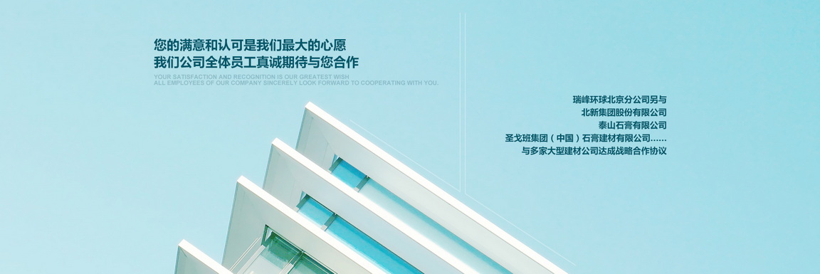 北京市朝陽區(qū)金盞鄉(xiāng)科鷹科技園內(nèi),是北京******的建材營(yíng)銷商之一,專業(yè)銷售各種高檔建筑材料的現(xiàn)代化公司.本公司已與多家大型建材廠家達(dá)成合作協(xié)議:泰山石膏建材有限公司,北新建材有限公司,濱州綠邦有限公司,河北金秋有限公司,北京金隅砂漿有限公司,歐文斯科寧(中國(guó))投資有限公司,湯姆節(jié)能建材(北京)有限公司等.更與國(guó)外泰國(guó)工廠生產(chǎn)的:美巖板,清水板,木絲水泥板,木紋木絲板……簽訂了國(guó)內(nèi)經(jīng)營(yíng)權(quán);與德國(guó)高新企業(yè)超薄石材簽屬超薄巖板國(guó)內(nèi)代理權(quán)(超薄巖板,可彎曲石材,厚度1.5~2mm左右)與臺(tái)灣合作研發(fā)礦石板(以最好的效果提現(xiàn)礦石的效果).好的工程絕對(duì)少不了一個(gè)好的建筑材料,瑞峰環(huán)球攜手各大品牌為您的工程保駕護(hù)航.